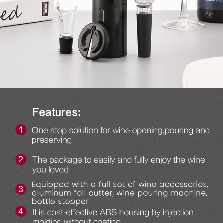• Easy to Use :With its user-friendly design, this electric red wine opener is easy to use, making it perfect for both occasional and frequent wine drinkers.