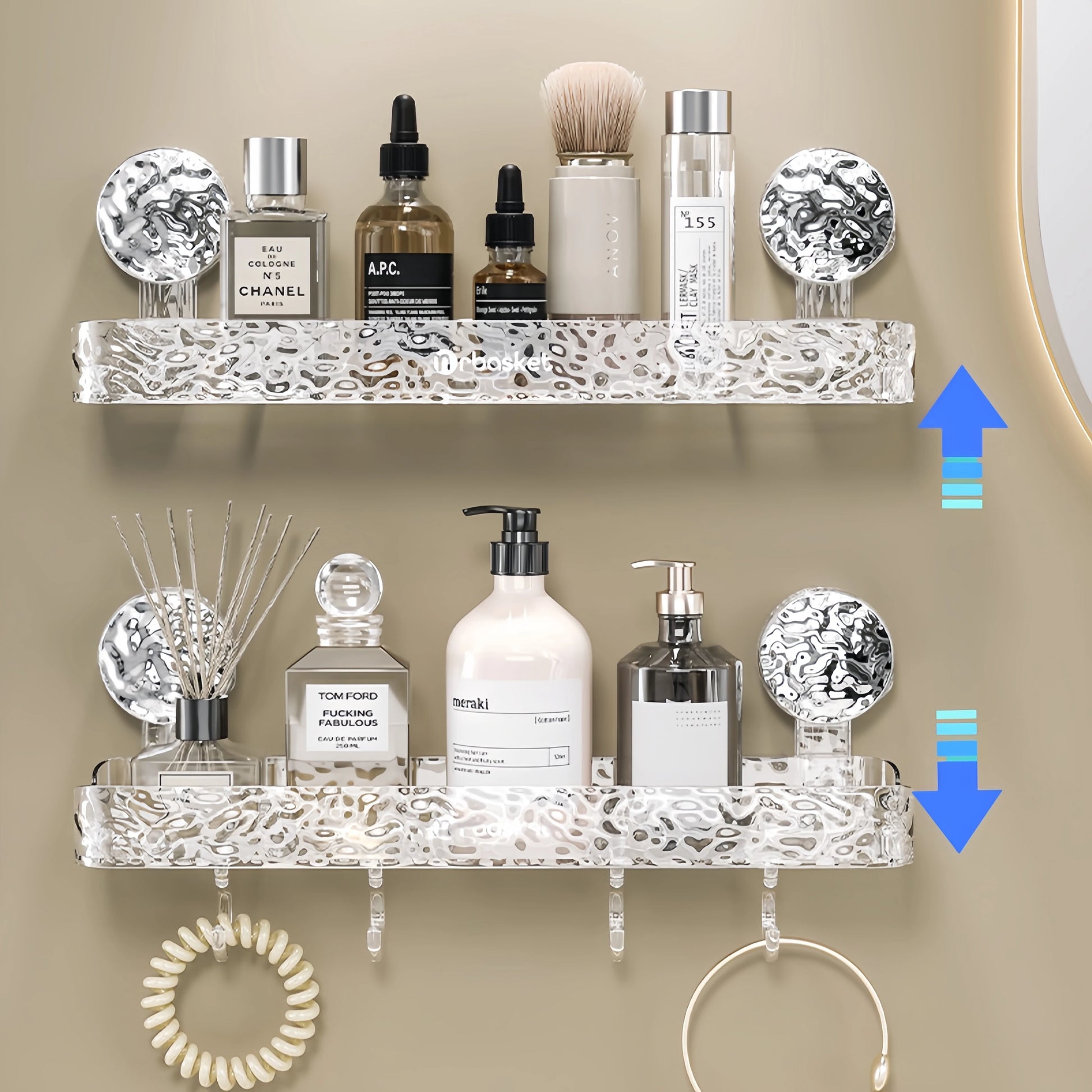Elegant Glacier Suction Cup Bathroom Organizer