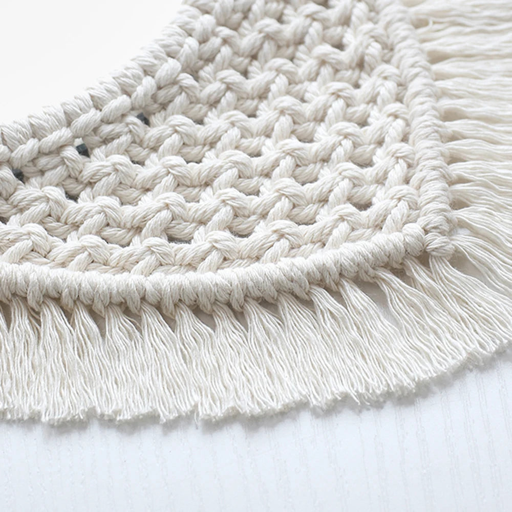 Elevate your interior design with this sophisticated hanging wall mirror, expertly crafted to blend functionality with contemporary aesthetics. Featuring a pristine white finish and elegant macrame fringe detailing, this round mirror serves as both a reflective surface and a striking focal point for any room. The thoughtfully proportioned design includes a 15cm mirror diameter housed within a 25cm outer frame, making it ideal for entryways, bedrooms, living spaces, or accent walls. Constructed from durable plastic materials, this lightweight piece offers easy installation without the burden of heavy hardware. The macrame framing adds artisanal charm while maintaining a clean, modern sensibility that complements various décor styles. Perfect for those seeking to introduce texture and visual interest to their home environment. Free shipping included.