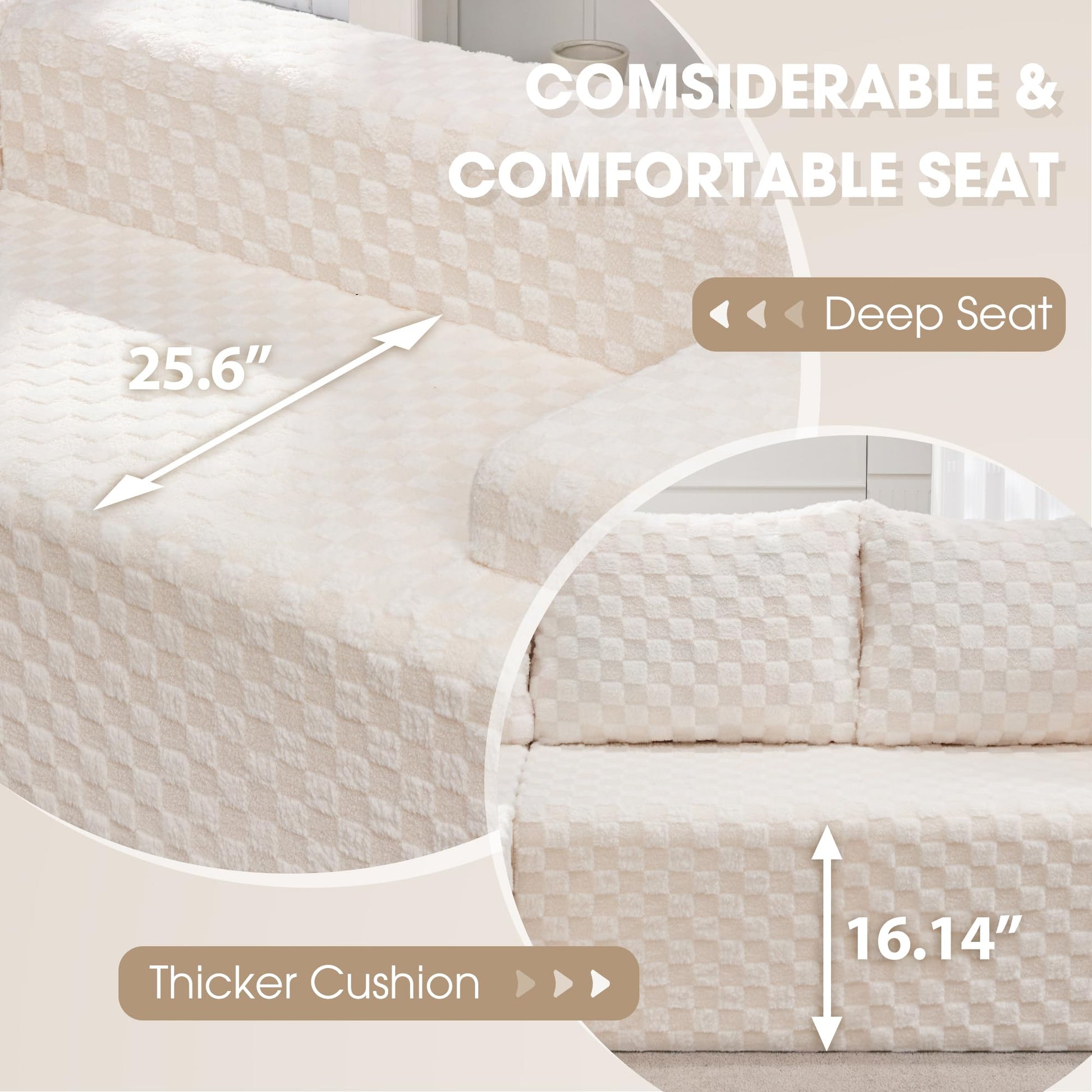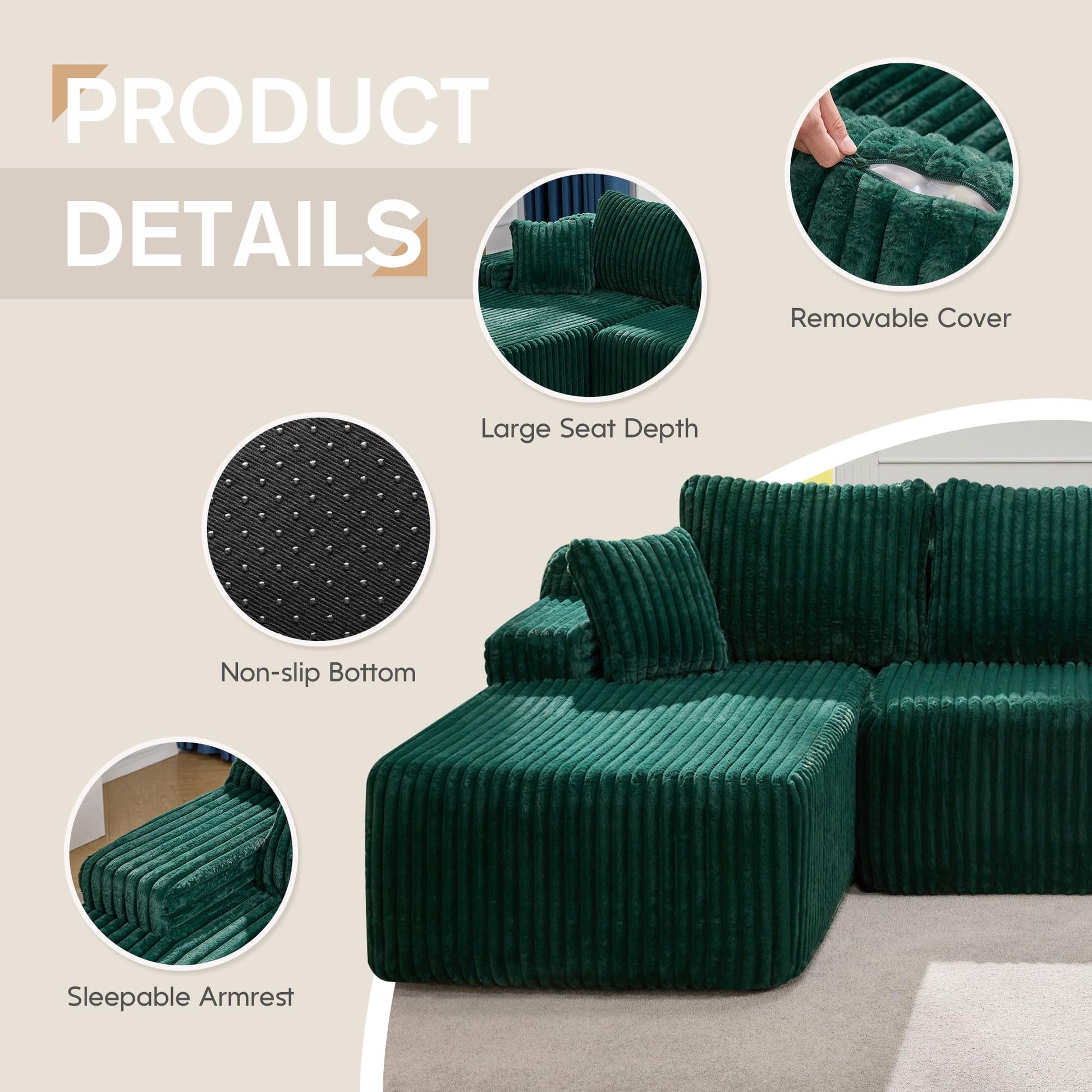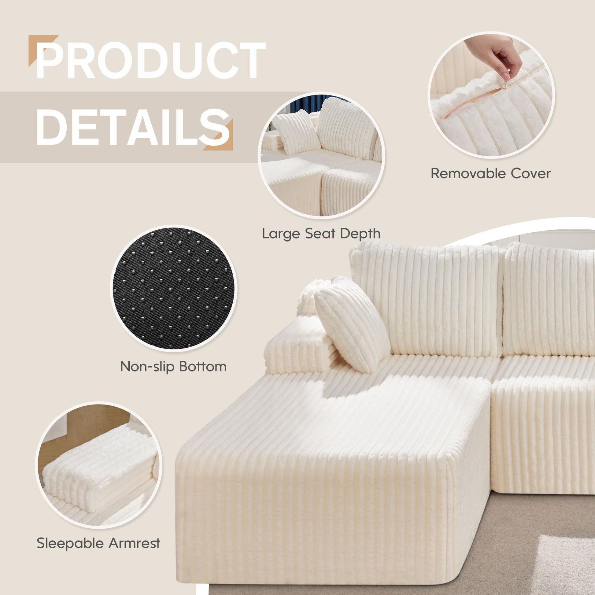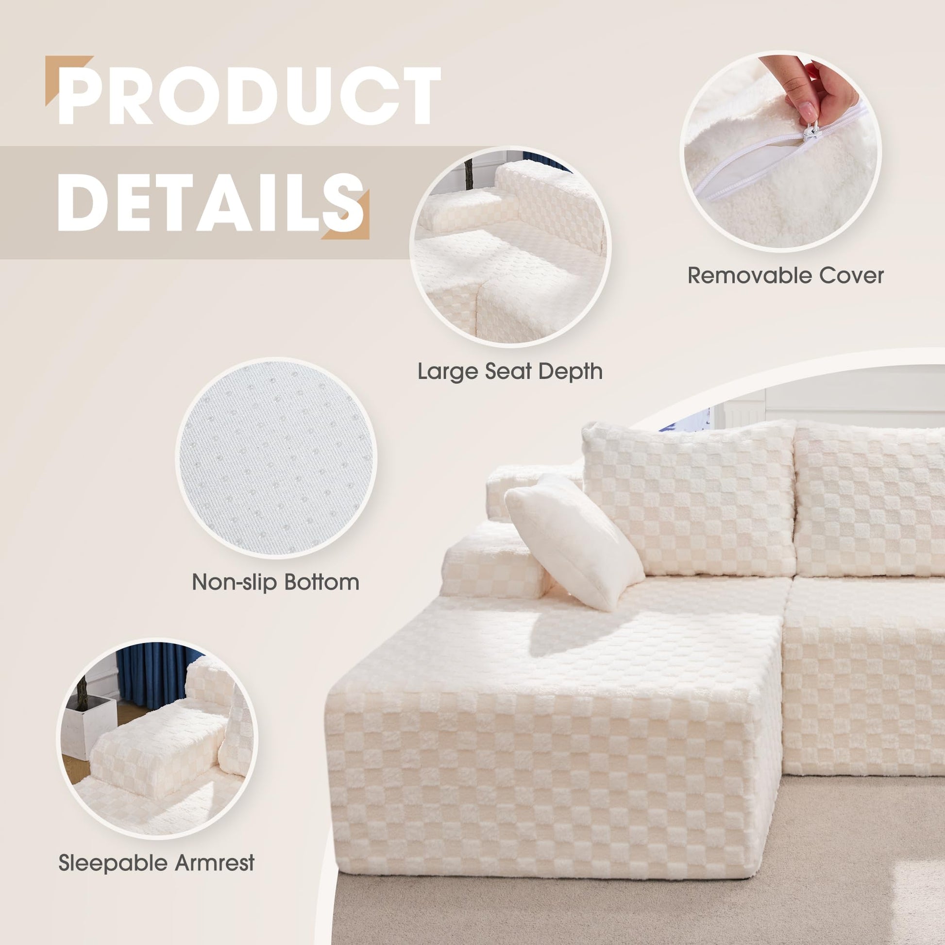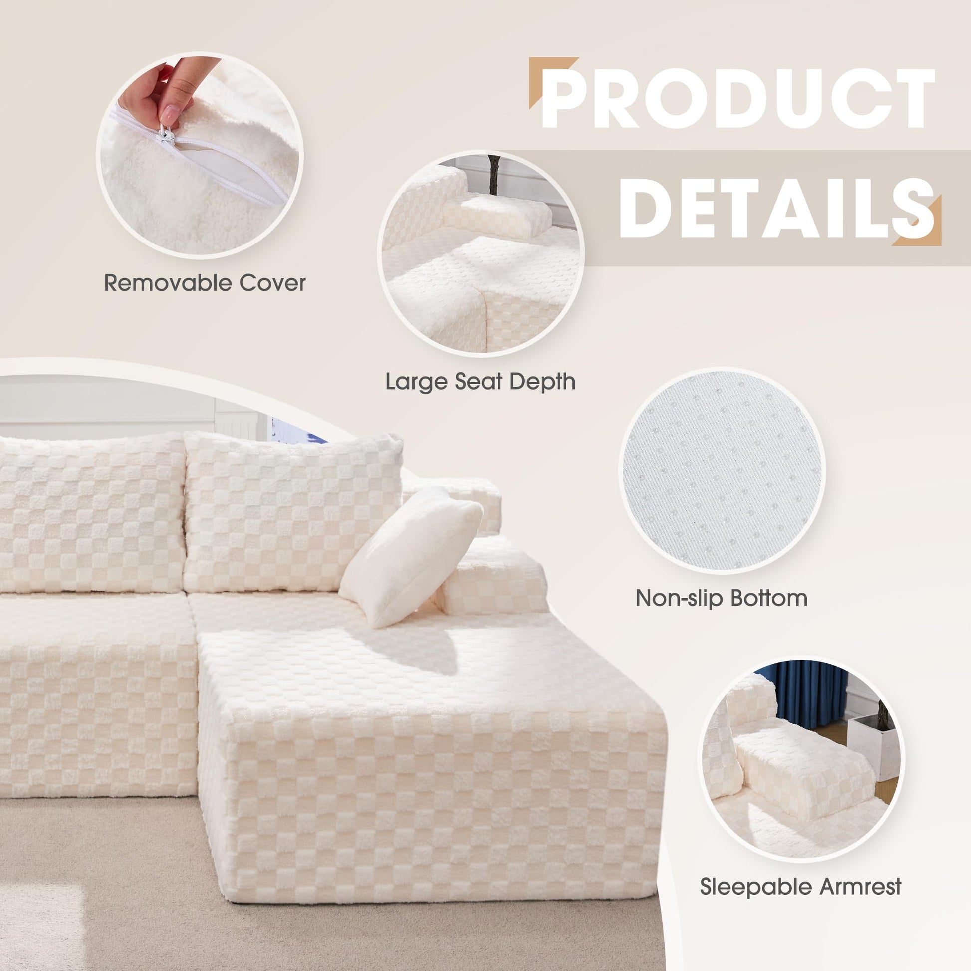 - Comfortable Sectional Couch: The cloud couch is made of breathable fabric and high-resilience memory foam with removable back cushion and neck pillow, providing you with a super comfortable experience. The anti slip design at the bottom ensures the stability of the sofa. The comfy sofa cover is machine washable and can be cleaned when dirty.