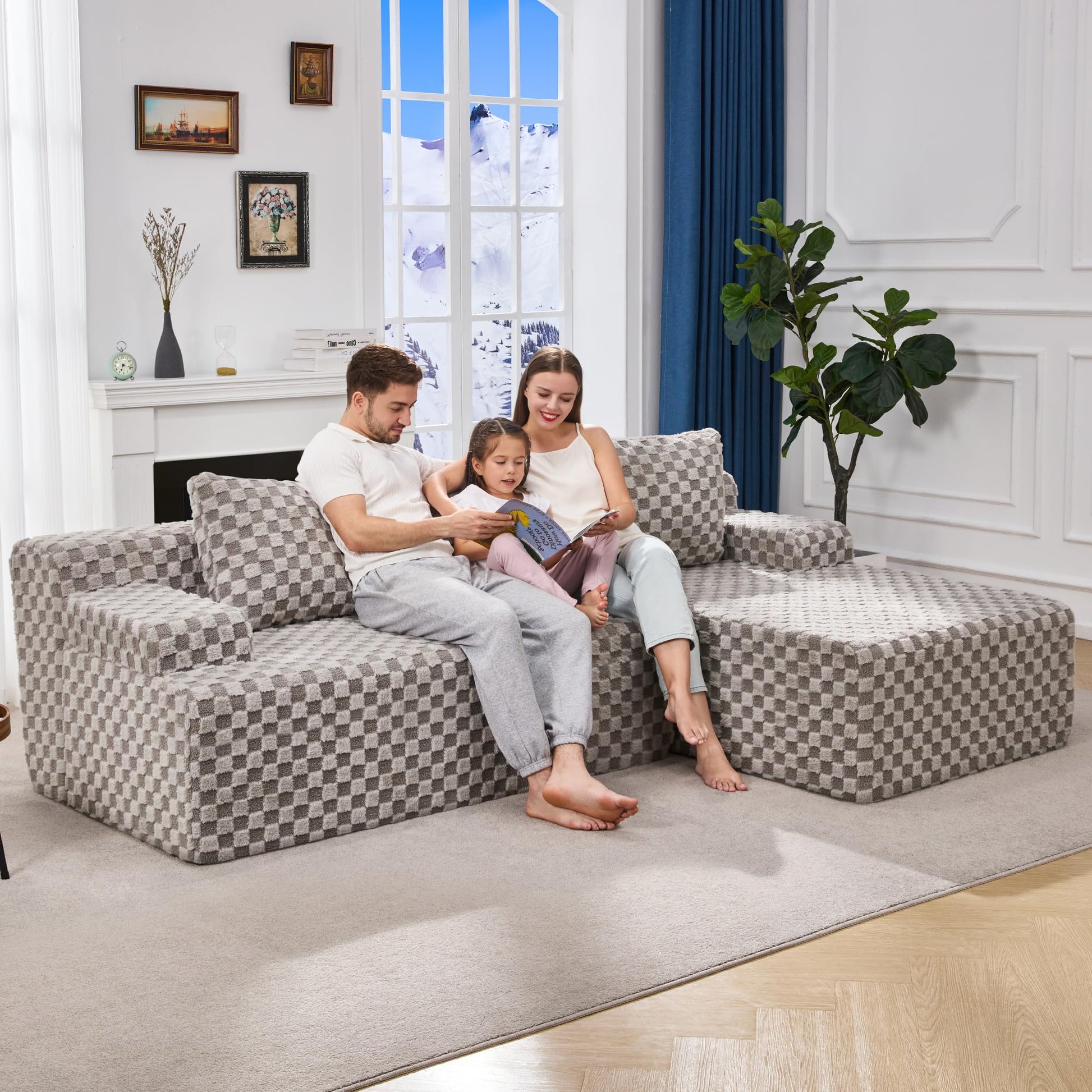Hobestluk 96β Modular Sectional Sofa Couches L-Shape Couch 3 Seat Modular Sofa Memory Foam Sectional Couches for Living Room, Cloud Couch with Oversized Chaise (Grey, Stripe (Right Facing Chaise))