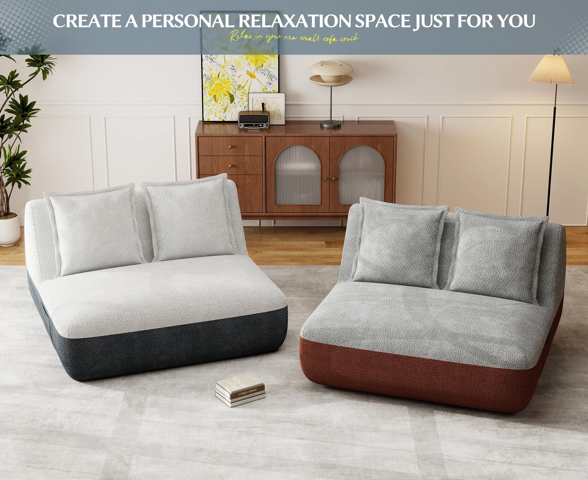 - Unique Dual-Tone Design: This small couch features a stylish dual-tone design. This unique color combination adds a modern and elegant touch to your space. Whether placed in the living room, bedroom, or study, this small sofa chair can blend into your home decor, becoming an indispensable part of your home.